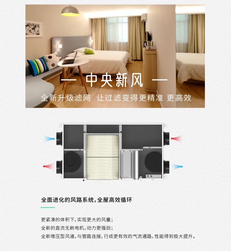 士諾新風星耀系列,讓每一個家庭都能全屋凈化,讓每一份呼吸都潔凈如新。士諾新風星耀系列采用Pure ESP凈電滅菌過濾技術,能夠在補充新鮮有氧空氣的同時,做到祛除霧霾、殺滅細菌、分解VOC、臭氧負增加、恒溫恒濕等功效,并且凈電模塊只需水洗無須更換,做到低成本享受舒適生活。產品特點:殺菌消毒、全屋新風、多重過濾、智能控制、靜音設計!