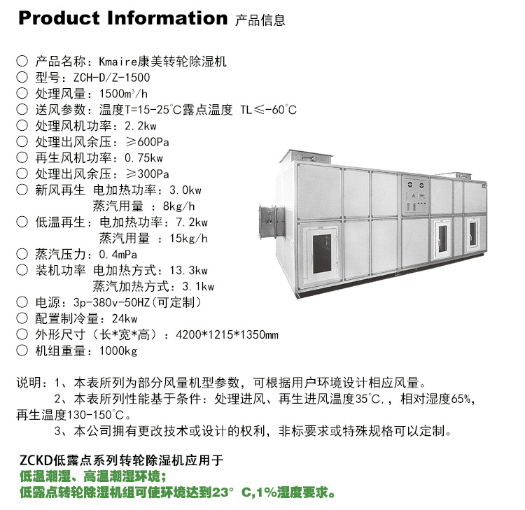 1、本表所列參數(shù)基于條件:處理進風、再生進風溫度35℃,相對濕度65%,再生溫度130-150℃;