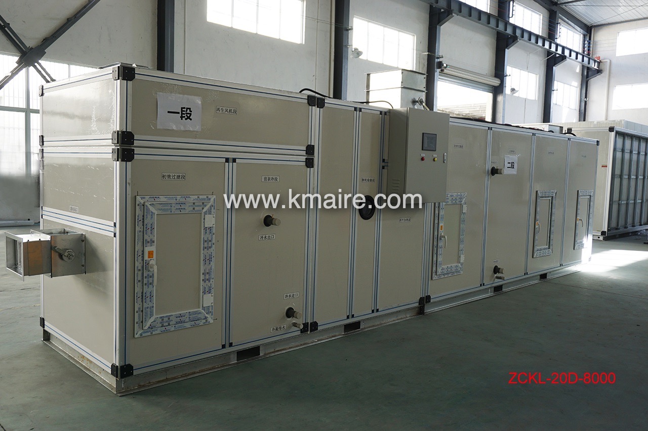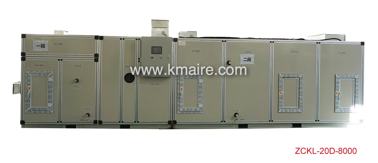 1、ZCKD低露點(diǎn)轉(zhuǎn)輪除濕機(jī)組主要由初效過(guò)濾段、新風(fēng)表冷段、回風(fēng)段、混合表冷段、超級(jí)硅膠或分子篩轉(zhuǎn)輪除濕段、冷吹再生區(qū)、后表冷段、中效過(guò)濾段、均流段、送風(fēng)段和PLC電氣控制系統(tǒng)組成;